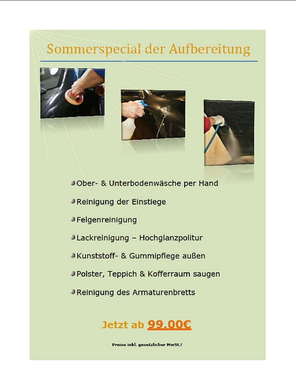 Nutzen Sie unser Sommerspecial & Ihr Auto wird mit der Sonne um die Wette strahlen!