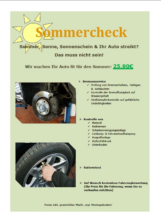Sommer, Sonne, Sonnenschein & Ihr Auto streikt?Das muss nicht sein!